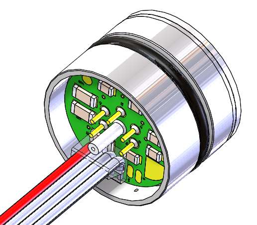 The sensing package utilizes silicone oil to transfer pressure from the 316L stainless steel diaphragm to the sensing element. A PCB is attached to the package that contains laser-trimmed resistors for temperature compensation and offset correction.