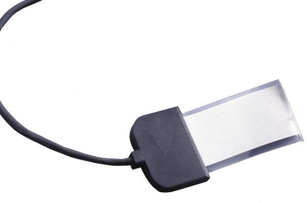 SDT中的“S”表示的是“屏蔽”的意思。SDT1压电薄膜传感器包含一个与塑胶壳相连的矩形压电薄膜元件和一根18英寸长的同轴电缆线,薄膜元件上下两层丝印银浆,然后对折,形成一个自屏蔽的工作区域,使得该产品可以应用在高EMI环境。