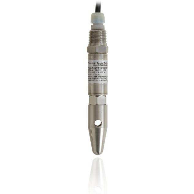 AST4500 和 AST4510 系列 IS 认证投入式传感器是获得 UL/cUL913 (CSA 157) I 类 1 区 C、D 组认证的液位传感器,可用于设有认证安全栅的本安区。 它还获得 ATEX / IECEx Ex ia IIB T4 Ga(Ta = -40°C 到 +80°C)认证。这款投入式传感器系列可提供 0-1 到 0-100 PSI 压力范围并且兼容各种介质,非常适用于室内和室外应用的液位监测。AST4500 和 AST4510 液位传感器虽然完全密封以防进水,但仍通过电缆通风来校正大气压变化。焊接外壳经受氦检漏机内部检测以确保具备相应防护性能。电缆导线同样与外部环境隔离以保证传感器可长期工作。AST4500 和 AST4510 系列采用可拆卸锥头,可通过 1/4”NPT 导管连接安装在储槽外部。通过这种结构,传感器可在储槽外部通过螺纹连接持续监测储槽液位,同时也可完全浸没以用于易受水浸或严重水洗环境下的应用。AST 支持电压或 4-20 mA 输出信号,可为多种应用提供经济高效的液位监测解决方案。